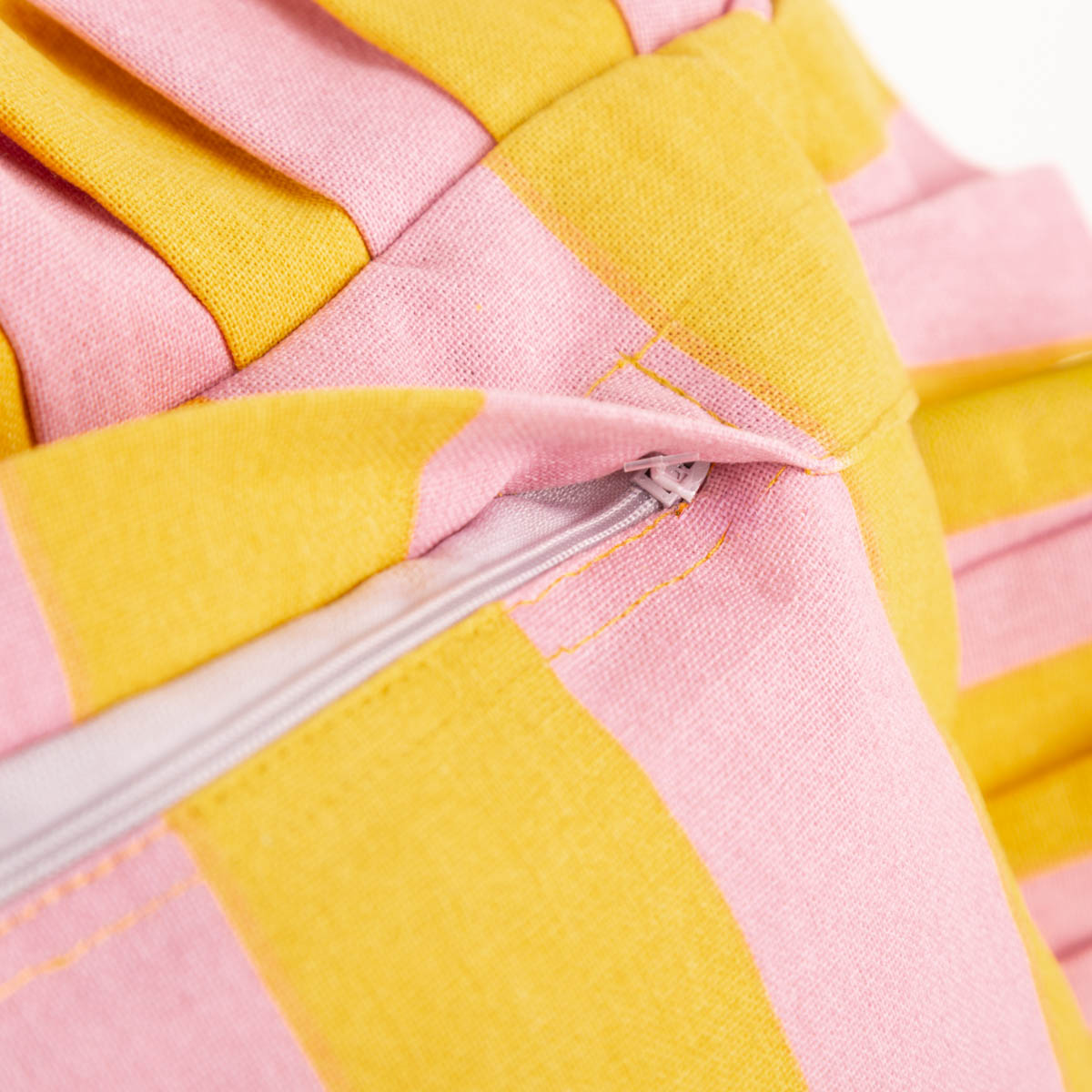 Summer Stripes: Ein Kissen zum Verlieben - Streifen trifft Rüschen in Gelb und Rosa