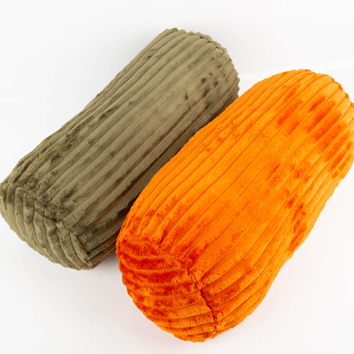 Kuschelkissen Nackenrolle aus Plüsch Cordoptik Streifen orange 20x45cm