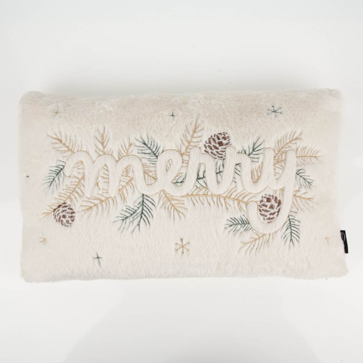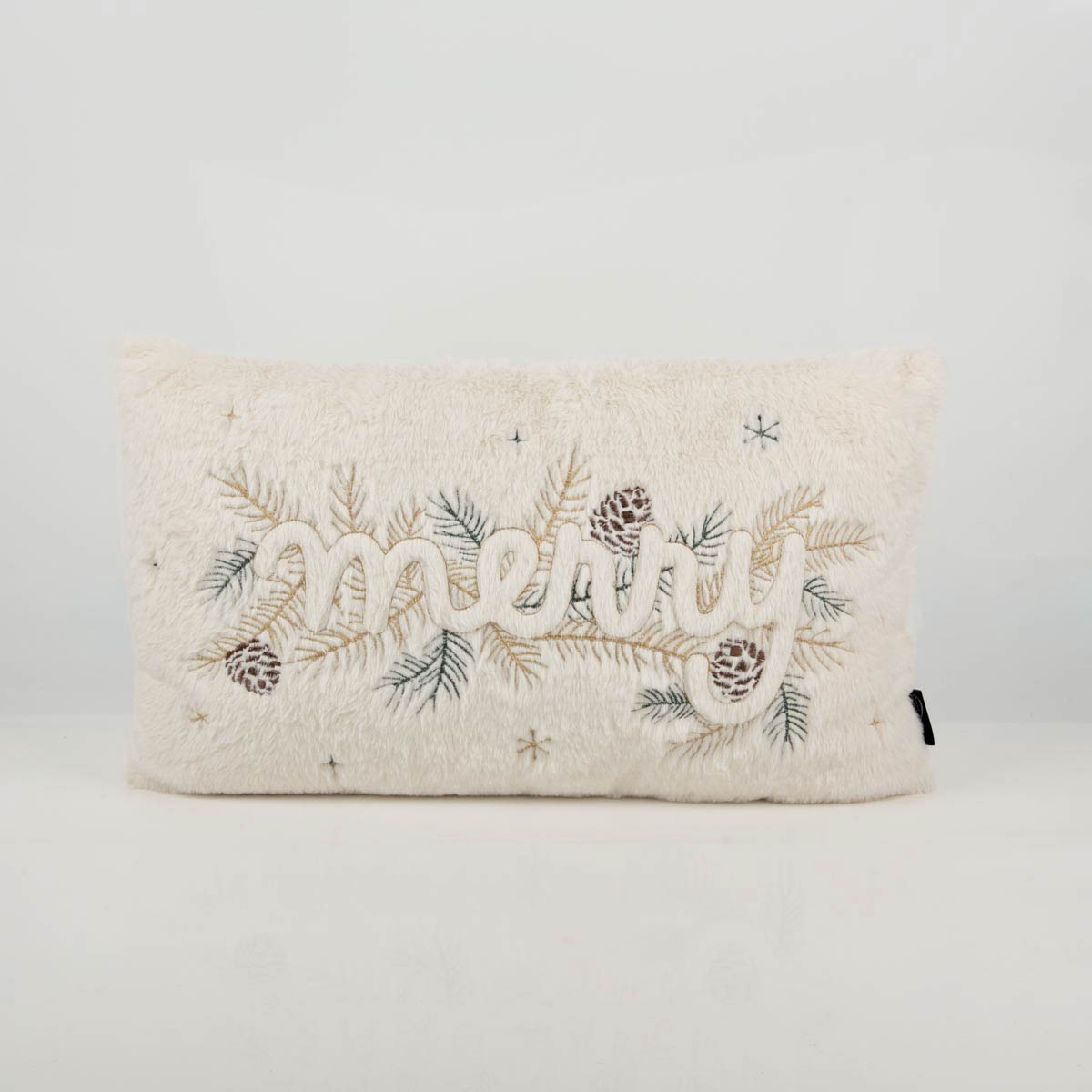 Kuschelkissen Weihnachtskissen Merry Plüsch bestickt weiß 30x50cm