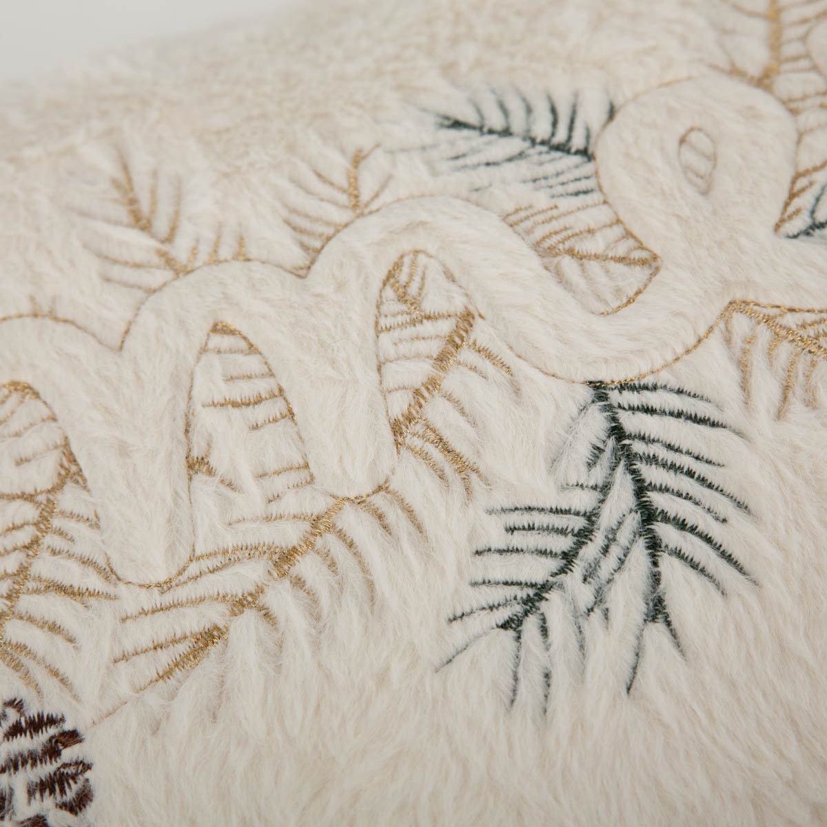 Bringe mit dem Kuschelkissen Merry in Weiß weihnachtliche Stimmung in dein Zuhause! Die Vorderseite aus kuschelweichem Plüsch ist mit dem Schriftzug Merry liebevoll bestickt – ein eleganter Hingucker für Sofa, Bett oder Sessel. Die Rückseite in schlichtem Weiß sorgt für eine ruhige, harmonische Optik.
