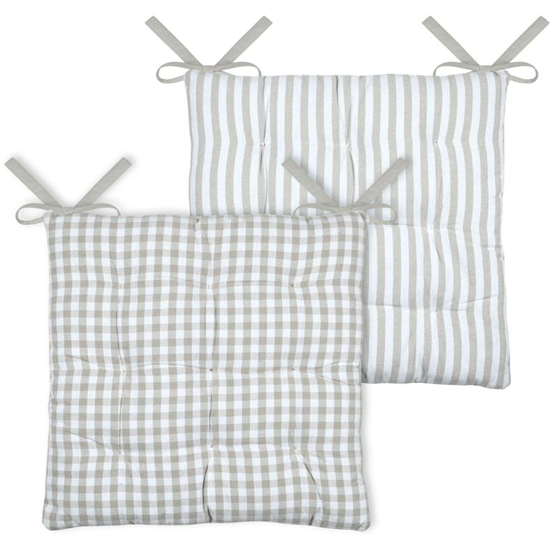 Zweiseitig verwendbares Sitzkissen mit Karo- und Streifendesign in Natur und Wollweiß