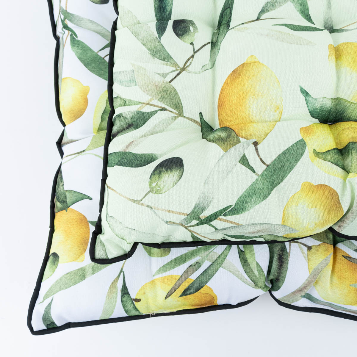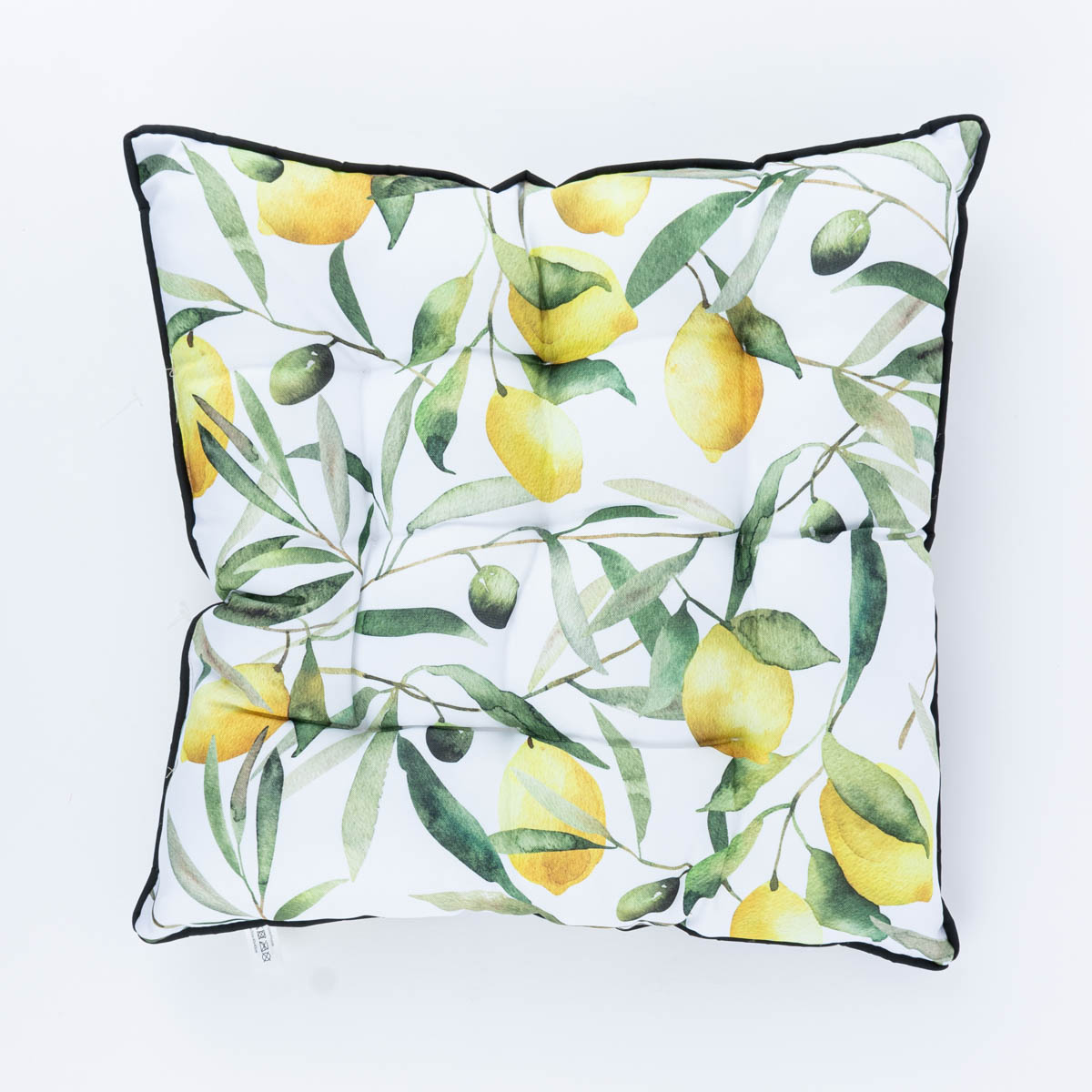 Sitzkissen Zitronen mit Kederumrandung aus Kunstfaser hellgrün- oder weiß-grün-gelb 40x40cm