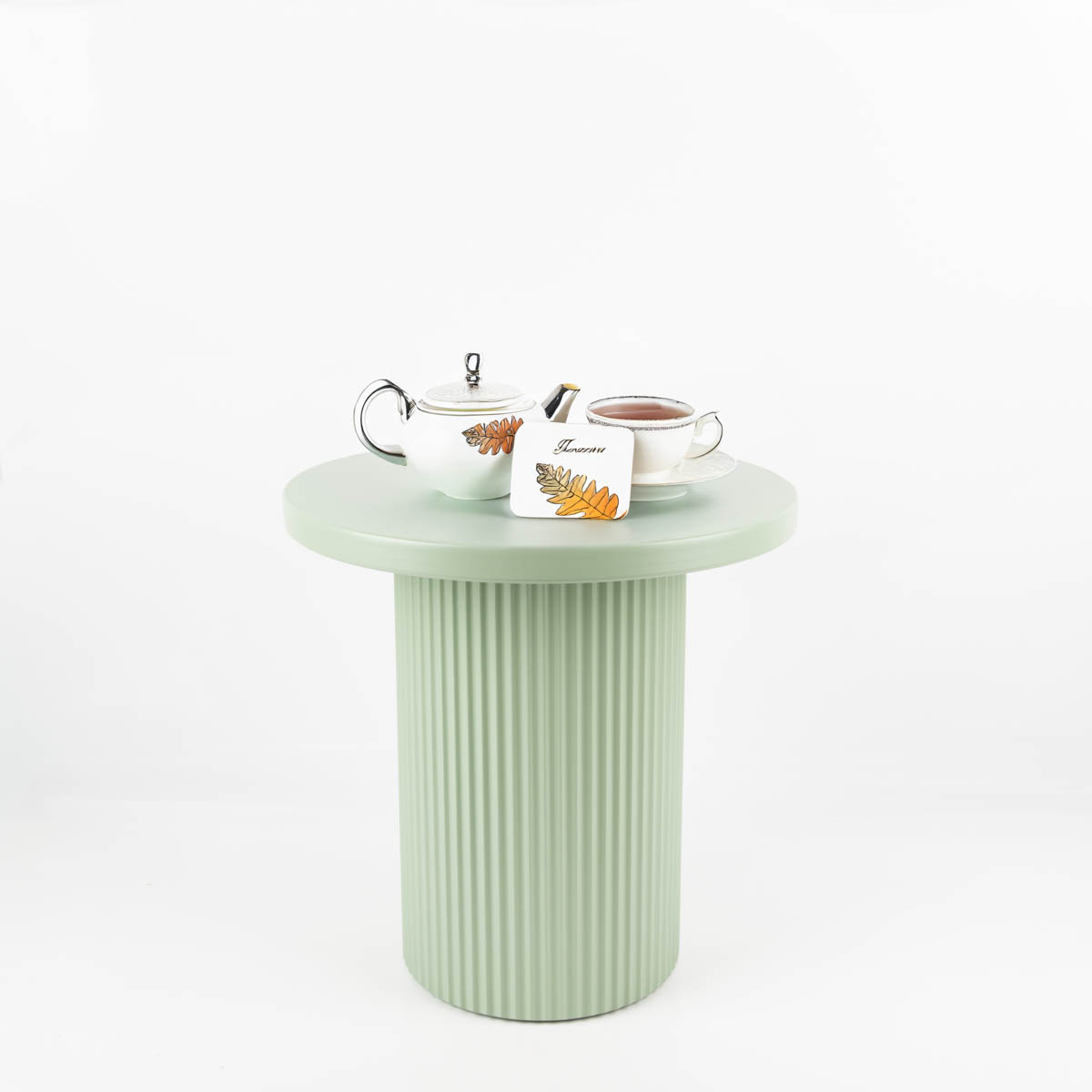 Beistelltisch in Mintgrün mit geriffelter Säule – Ø 40 x H 40 cm