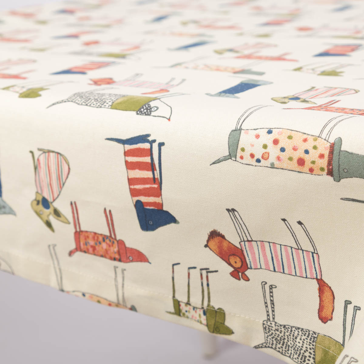 Mitteldecke Tischdecke aus Baumwolle mit Hunden beige bunt in versch. Größen von SCHÖNER LEBEN.