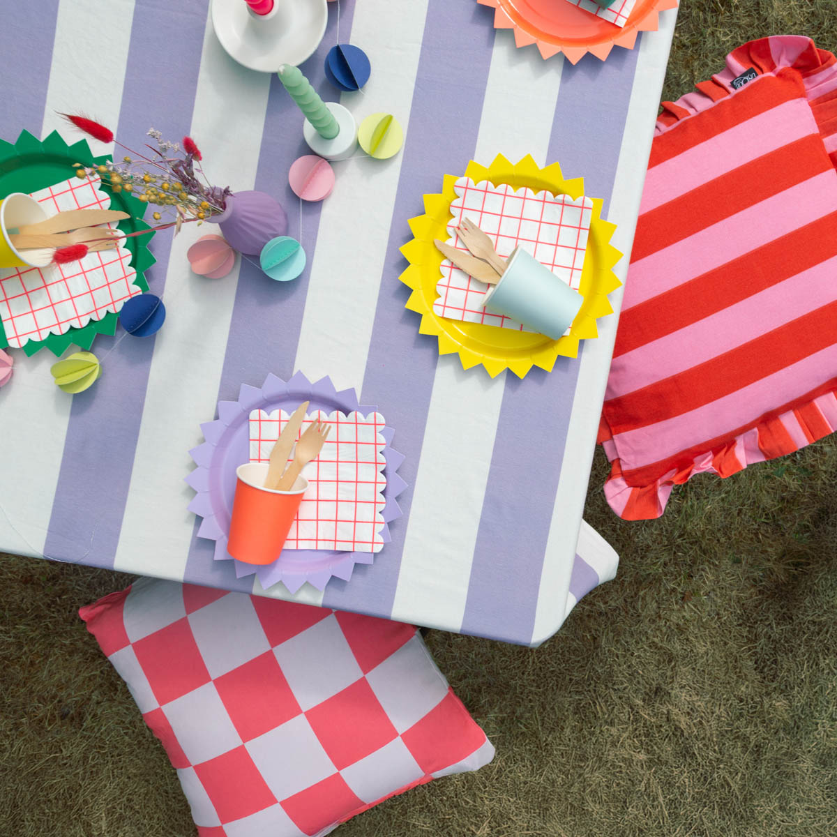 Tischdecke aus Baumwolle mit Streifen in Flieder und Ecru – handgefertigt für dein Zuhause