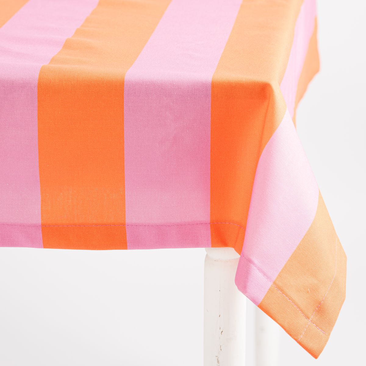 Dazu passt die Tischdecke Outdoor mit Streifen in Orange und Pink