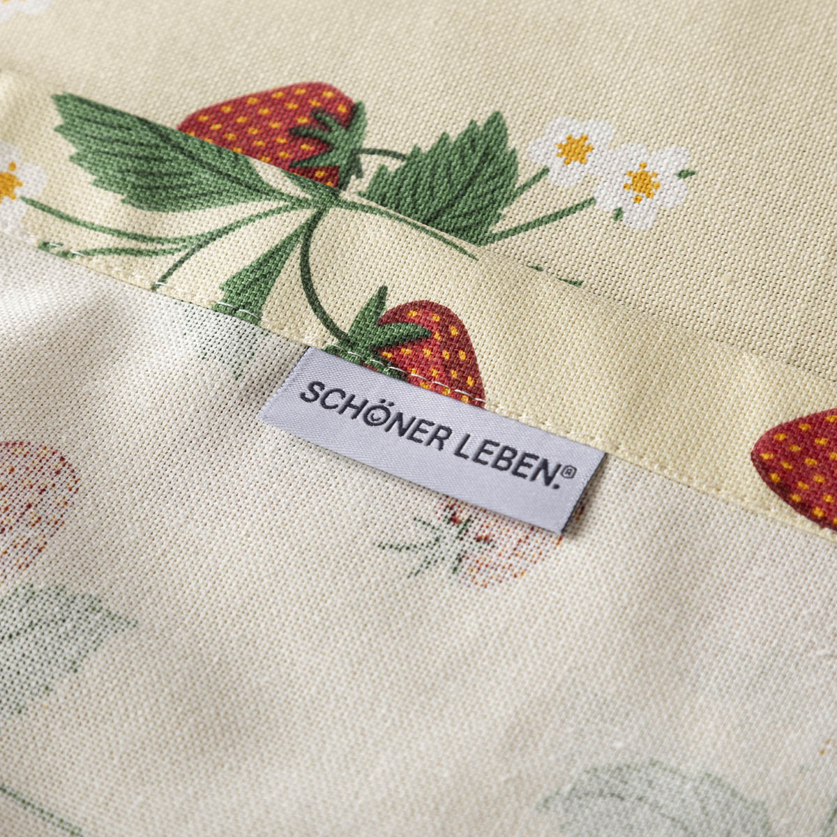 Die Tischdecke mit Erdbeer-Print aus unserer SCHÖNER LEBEN. Kollektion ist perfekt für einzigartige Tischdekorationen mit sommerlichem Charme. Die Erdbeerpflanzen mit Blüten, Blättern und süßen Früchten kommen auf dem Untergrund in einem zarten Vanilleton toll zur Geltung und setzt nicht nur deinen Erdbeerkuchen stilecht in Szene! Hochsaison für die Tischdecke mit den süßen Früchten ist natürlich der Sommer.