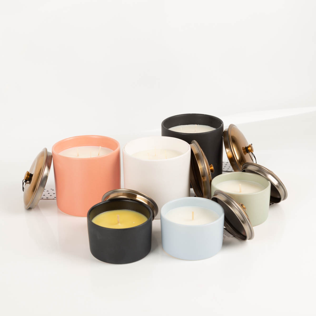 Gefertigt aus Sojawachs und eingefasst in ein massives Keramikgefäß, ist diese Duftkerze sowohl dekoratives Wohnaccessoire als auch stilvolle Duftquelle. Der Kupferdeckel schützt das Wachs und rundet das Design harmonisch ab.