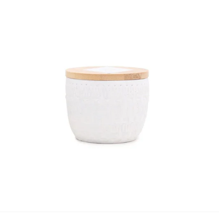 Die Sonora Duftkerze von Paddywax ist inspiriert von der Weite, Ruhe und Ursprünglichkeit des amerikanischen Westens. Das handveredelte Betongefäß in Weiß überzeugt durch seine bewusst raue Oberfläche und feine, eingeätzte Details. Abgerundet wird das Design durch einen natürlichen Holzdeckel, der die Kerze stilvoll verschließt und das minimalistische Erscheinungsbild unterstreicht.