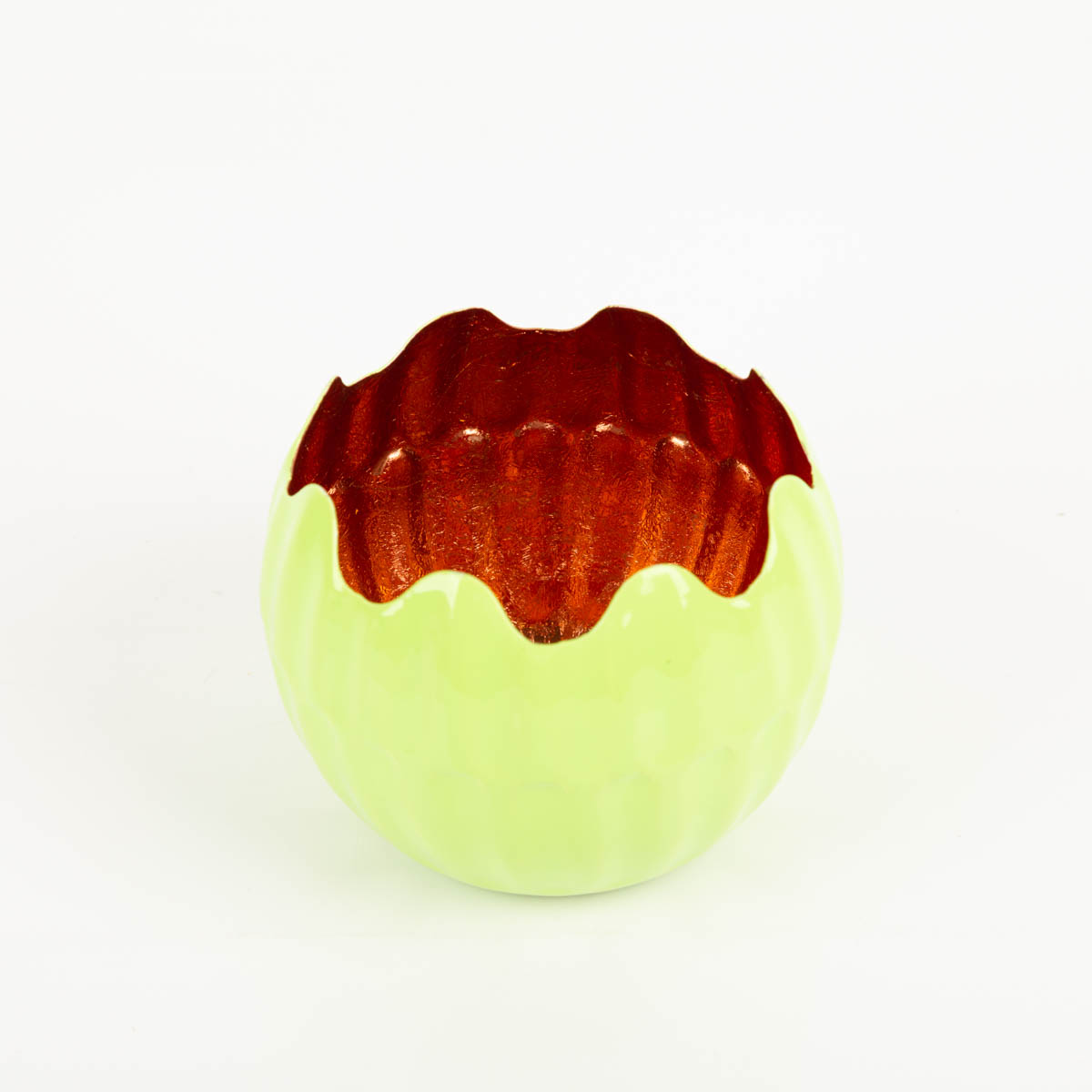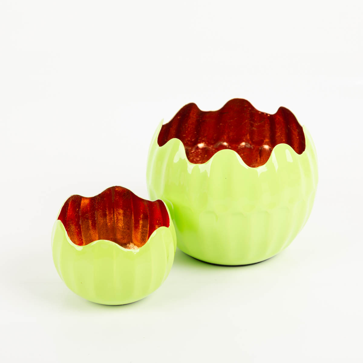 WARMER LICHTEFFEKT: Windlicht Holi in Neon-Grün mit kupferfarbener Innenseite – reflektiert Kerzenlicht weich und gemütlich