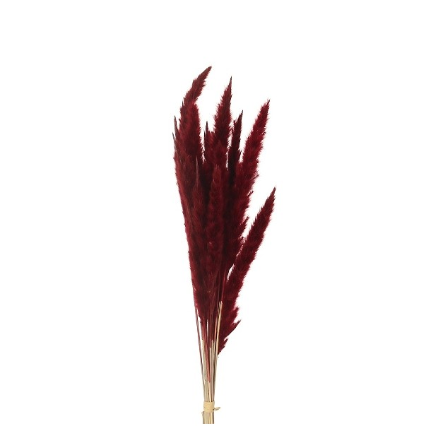 Mit diesem pinkfarbigen Pampasgras setzt du eindrucksvolle Akzente in deiner Deko. Das Bündel besteht aus 15 Stielen, die durch ihre kräftige Farbe und flauschige Struktur sofort ins Auge fallen. Mit einer Länge von ca. 70–80 cm eignet sich das Pampasgras perfekt für Vasen, Solo-Arrangements oder als Teil eines farbigen Trockenblumenstraußes.