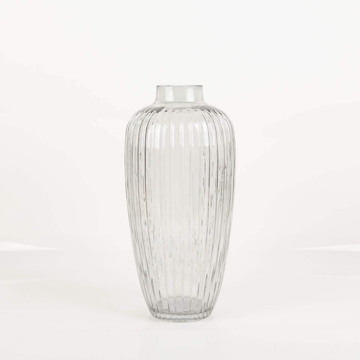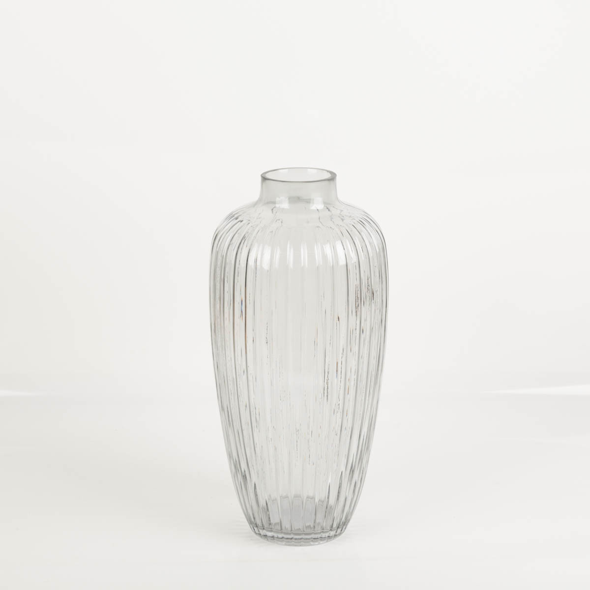 Vase aus Glas gerillt grau 16x36cm von Werner Voss