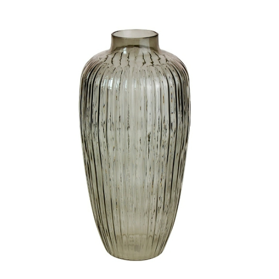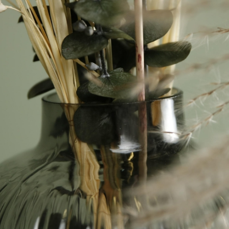 Gerillte Glasvase in Grau: moderner Blickfang für Trockenblumen und Sträuße