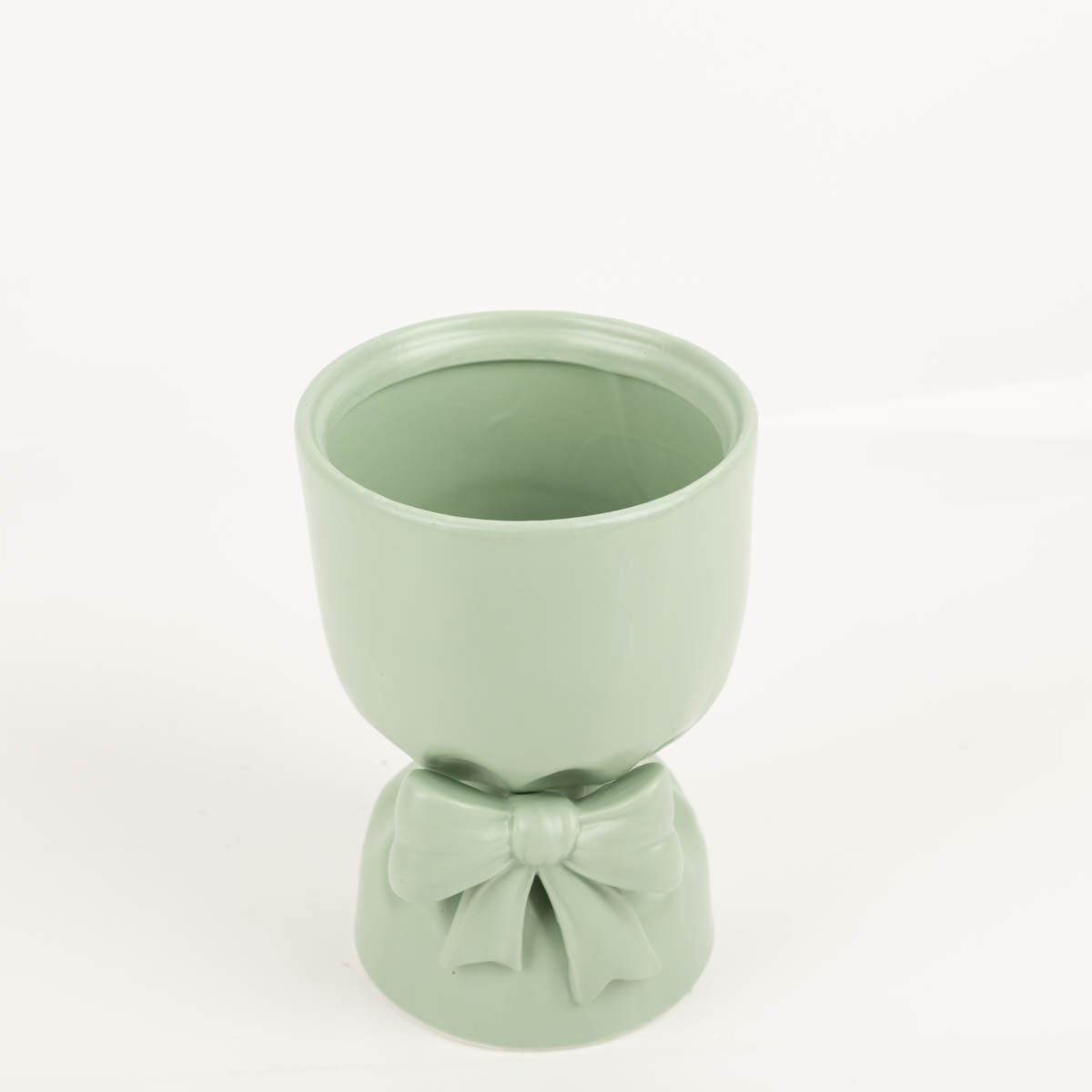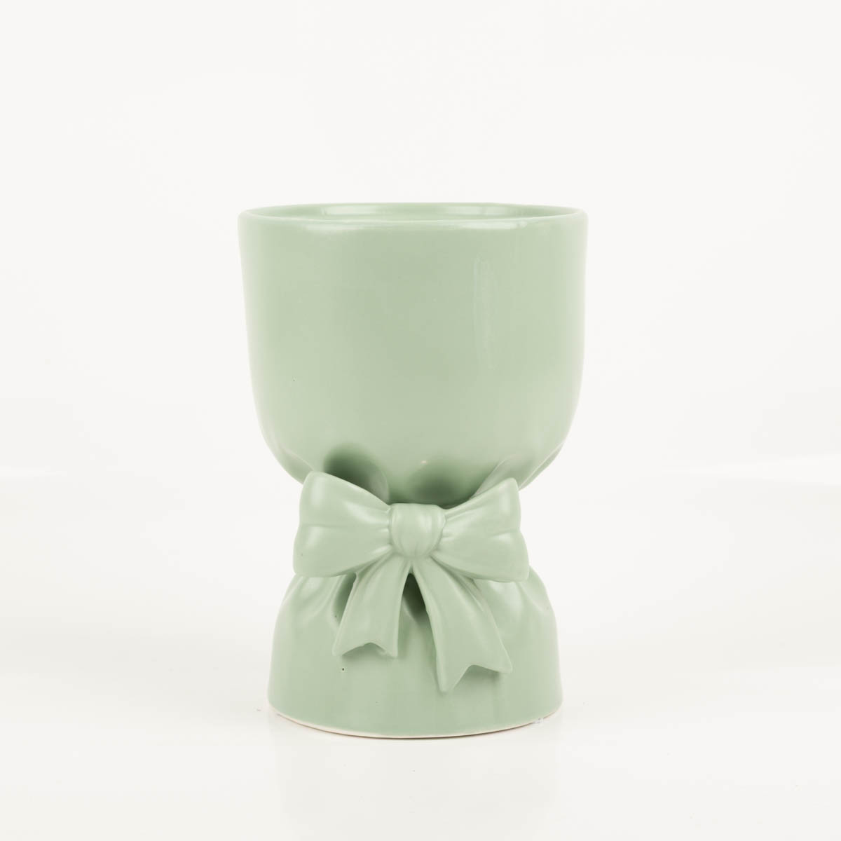Dekorative Keramikvase von Boltze in zartem Mintgrün mit auffälliger Schleife als besonderem Blickfang für Tisch, Regal oder Sideboard